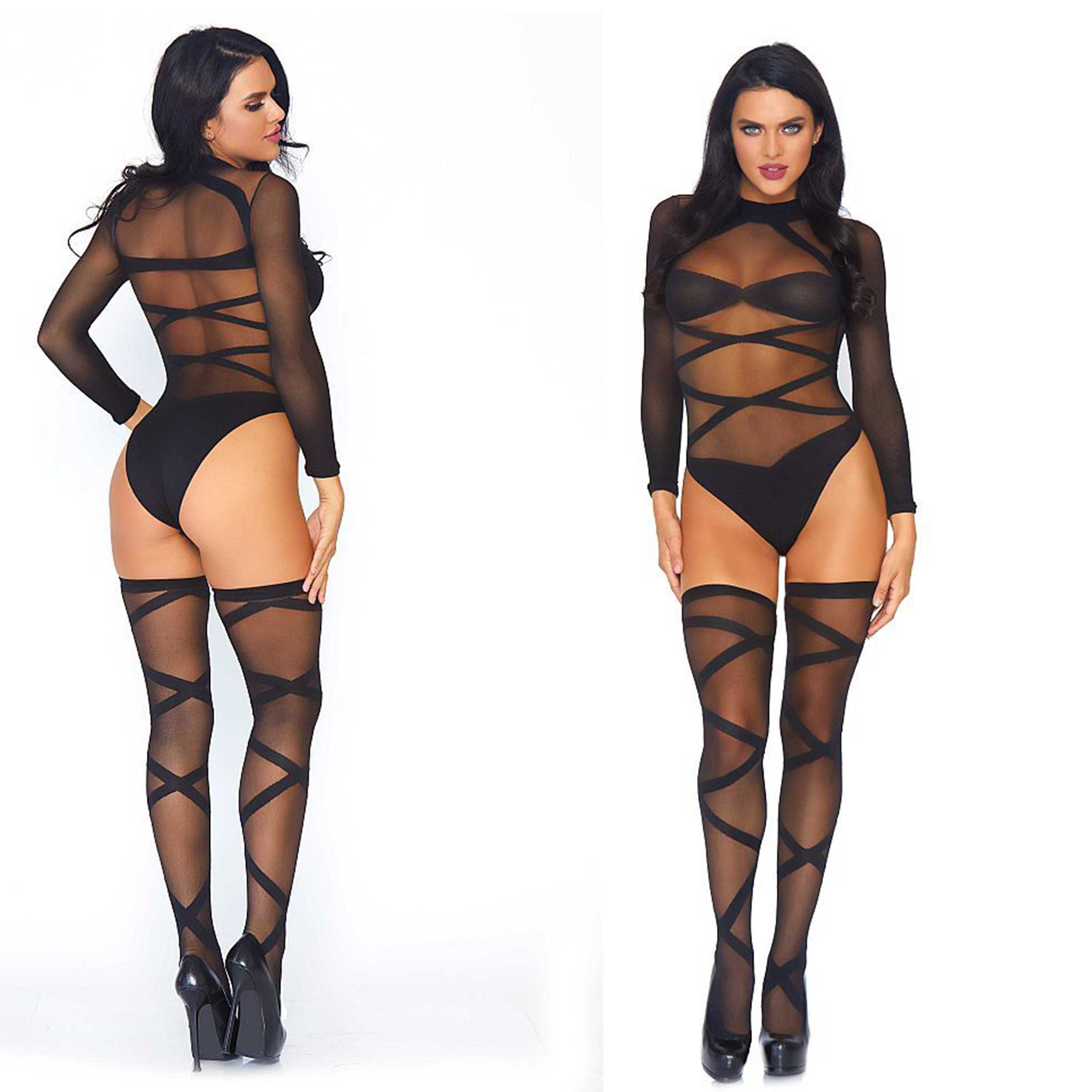 Acest set lenjerie erotică negru Opaque Criss Cross este creat pentru a atrage toate privirile și a-ți pune în valoare formele într-un mod incitant. Realizat din material fin și elastic, setul este compus dintr-un body cu dungi opace și maneci lungi, completat de ciorapi cu bandă asortați. Este alegerea ideală pentru o apariție sexy, elegantă și memorabilă.